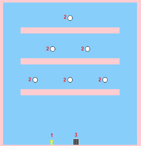 Above is a typical level. 1 is the player, 2 are targets and 3 is the goal.